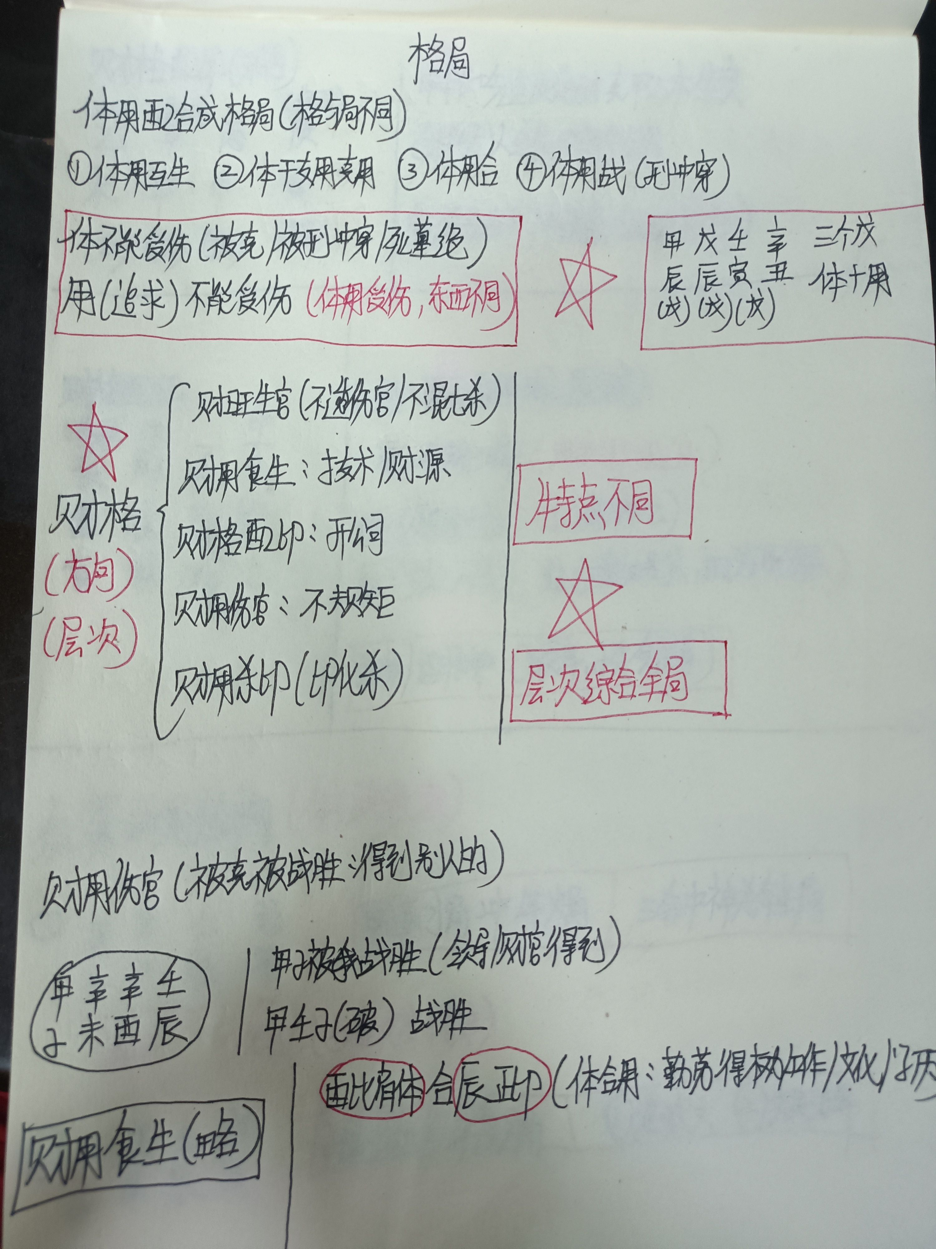 核心原理与使用说明 做功效率是核心:盲派不看身强身弱,只看“体”(印、比、食伤)如何作用“用”(财、官)。成格的本质是 “体”高效地驾驭了“用” 。例如“食神制杀”,就是“体”(食神)高效地制约了“用”(七杀)这个凶神,变废为宝。 位置与净浊是关键: 位置:用神和制神的位置至关重要。如“伤官配印”,印星最好在日主旁边,才能直接生日主并制约伤官。 净浊:格局喜清纯,不喜混杂。如“官杀混杂”本为浊,需要“取清”才能成格。 大运是应期:命局是车,大运是路。一个好格局,也需要相应的大运来辅助实现。反之,一个破格的命局,遇到能救应的大运,也能焕发生机。 实战性:盲派格局源于大量实战总结,每个格局都对应着一类鲜明的人生轨迹。例如: 食神制杀:多出武职、权威、攻坚克难的技术人才。 伤官配印:多出文职、教师、研究员、谋士。 伤官生财:多出商人、艺术家、靠技术和口才赚钱的人。 格局等级评定核心原则 格局的等级评定是盲派论命的核心环节,直接关系到命主成就的高低。 “制化”程度:这是评定等级的第一要义。制化越干净、越彻底,格局层次越高。例如“食神制杀”,食神和七杀力量完全对等,就是上品;如果食神弱而杀强(制不住)或食神强而杀弱(制过头),都会降为中品甚至下品。 “护卫”情况:成格的五行是否受到保护。例如“伤官配印”格局,最怕“财星”来坏“印星”,如果八字中无财星或财星无力,则为上品;若有财星紧贴印星来破坏,格局立刻大降,甚至破格。 “纯净”与否:格局喜清纯,不喜混杂。五行之气越纯粹,格局越高。例如“专旺格”,全局都是同类五行,则为极品;如果混入一两个逆势的异类五行但无力,则为上品;如果逆势的五行有根,则破格。 “真假”之分: 真格:符合成格条件,用神有力且不受伤害。等级高。 假格:看似成格,但用神无力或被破坏。等级低,或虚有其表。 “大局观”:最终评定要结合整个命局的气势、寒暖燥湿、调候用神等因素综合判断,不可仅凭名称定高低 重要提示:此表格为简化总结,实际论命极为复杂,需综合考量八字整体组合、刑冲合害、大运流年等诸多因素,绝非简单对号入座。此内容仅作传统文化知识了解,请以理性态度看待。 如果有用请收藏或转发给你的朋友!